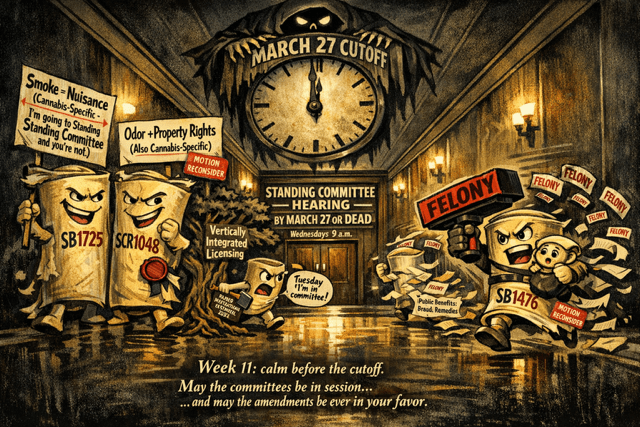 Week 5 Update: Legislators enter a pivotal stretch as four marijuana measures line up for committee hearings and others progress to the next step. Senator