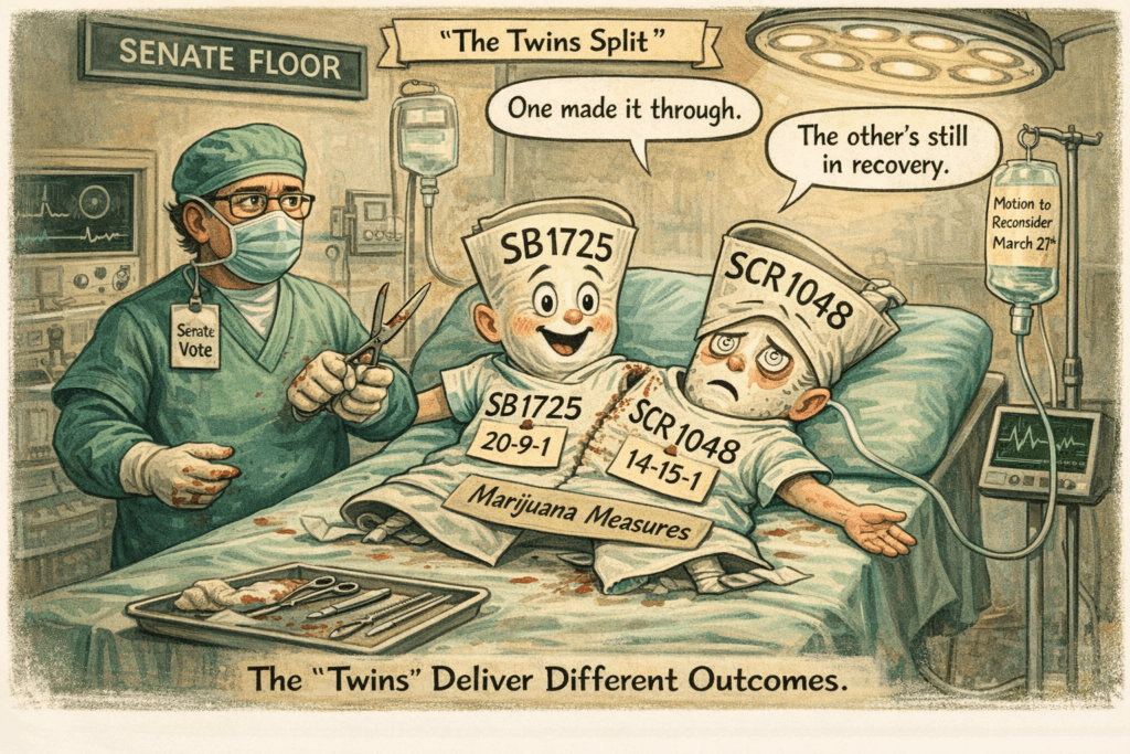Lawmakers tackled two related marijuana measures this week, and the so‑called “twins” delivered very different outcomes.