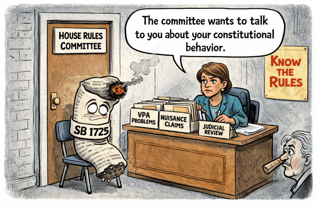Much of the criticism centers on the bill’s language stating that “lawful possession or use of marijuana does not preclude a finding of nuisance.” Opponents argue that lawmakers cannot take conduct voters explicitly legalized, relabel it as a nuisance, and then punish it anyway. In their view, SB 1725 creates a backdoor path to penalize lawful marijuana use under a different name.